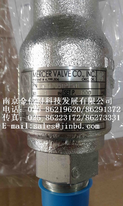 南京金倍得代理美国MERCER安全阀,优价销售,欢迎来电咨询! 美国MERCER安全阀91-17D51P13N1